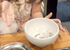 Nous avons également commandé un jus pour enfant, et là encore, une animation amusante nous a été proposée : la fameuse « bataille de jan-ken » (papier-caillou-ciseaux pour enfants).
