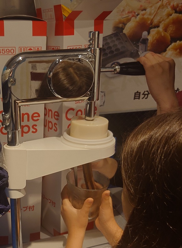 Comme nous étions accompagnés de notre fille, qui est en école primaire, on nous a proposé un set pour faire cuire soi-même 9 takoyaki, offert gratuitement aux enfants.