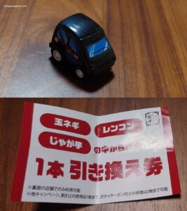 Enfin, au moment de partir, notre enfant a reçu une pièce pour jouer au distributeur de jouets “gachapon” situé à l’entrée du restaurant, qui a livré un petit jouet et un bon de réduction. Ce dernier petit moment de jeu a parfaitement conclu la soirée, et notre fille est repartie ravie et pleinement satisfaite.