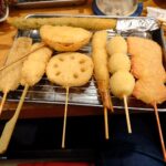 Le personnel vous installe à une table et on commande ses kushikatsu à la carte, en cochant sur une fiche ou via une tablette selon l’établissement. Dans les restaurants proposant un pot de sauce commun à la table, il est strictement interdit de tremper les brochettes deux fois dans la sauce – une règle d’or du kushikatsu !